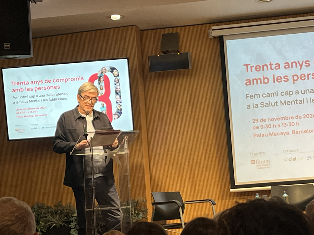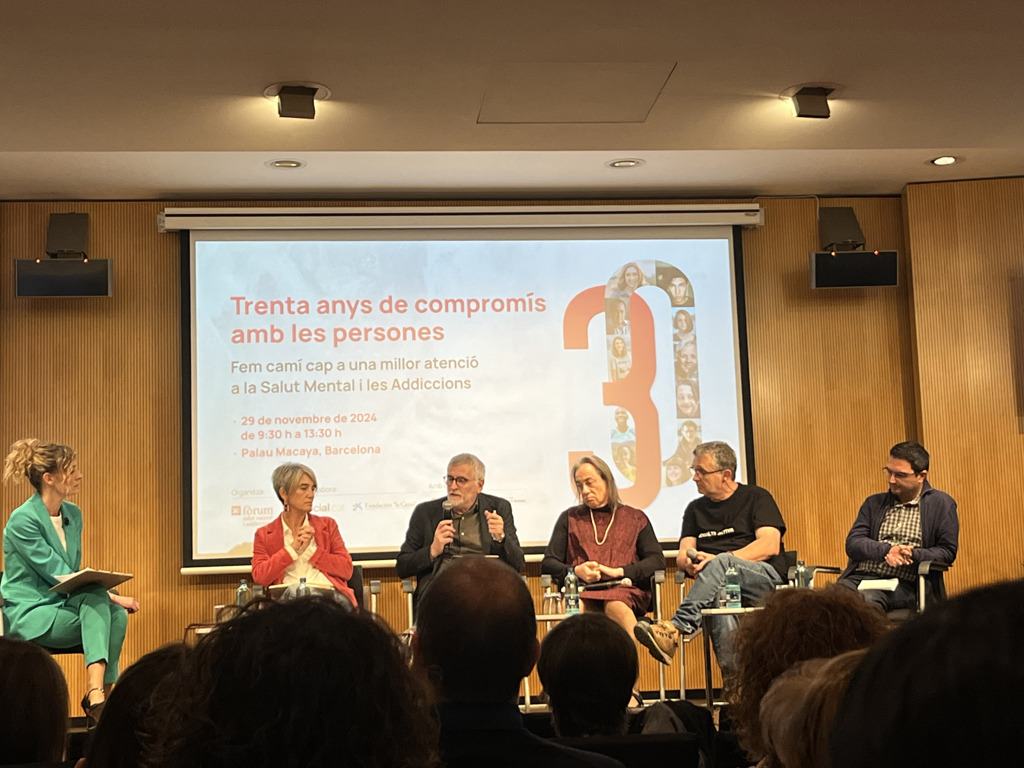 Hoy, viernes 29 de octubre de 2024, la directora de la Fundación Dra. Paloma Lago y el Jefe Clínico del CSMA SUD, Dr. Rafael Casas han estado presentes en el acto central del 30 aniversario de Fórum Salut Mental celebrado en el Palau Macaya. La Dra. Lago ha participado en el espacio de diálogo: Reptes de futur de la Salut Mental i les Addiccions.